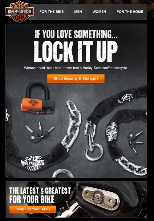 How can you possibly give people the feel of the open road in their inbox? You push the brand voice to ignite the rebellious streak that's inside all of us, especially the Harley-Davidson target audience.