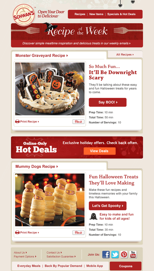Schwan’s “Recipe Of The Week” Emails and Promotional Banners